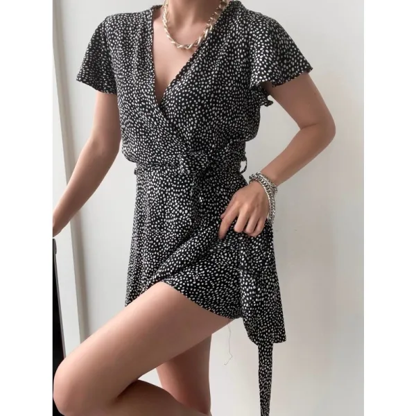 Royal Luipaard Jurk - DE280009 - Zwart - Heeft een luipaard patroon, v-halslijn Heeft korte mouwen Heeft elke zijde een lusje waar je eventueel de meegeleverde tailleband doorheen kan halen