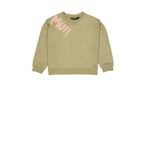 Deze sweater van Quapi heeft een ronde hals en lange mouwen. De sweater is gemaakt van 100% katoen. Met drukknoop, 3D applicatie en geribde boorden draag je deze makkelijk elke dag.