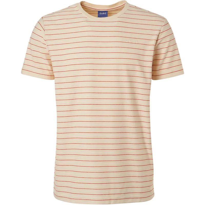 Dit shirt met ronde hals van Qubz heeft een streepjes print. Het t-shirt is gemaakt van 95% katoen en 5% elastaan. Dit shirt voor heren van Qubz heeft korte mouwen.