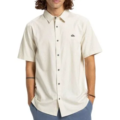 Specificaties: * Pasvorm: regular fit * Sluiting: normale knoopsluiting * Kleur: off white * Materiaal: 98% katoen – 2% elastaan * Extra bijzonderheden: borduursel op de borst; gerecycled geweven Quiksilver-label