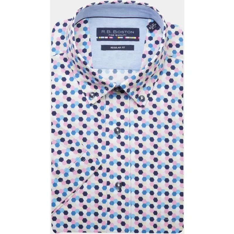 R.B. Boston Casual hemd korte mouw Roze Regular Fit 416670/401 Prijzen