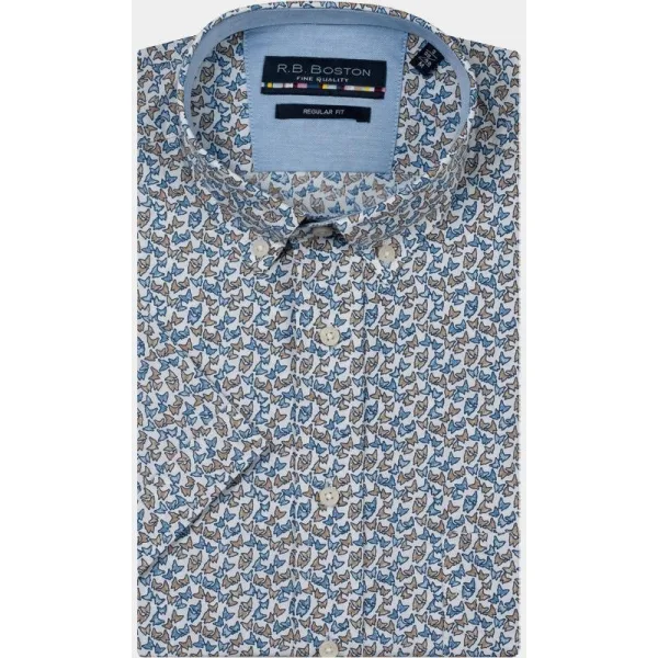 R.B. Boston overhemd korte mouw heren Blauw Marshall SS Button Down 616670/617 Prijzen