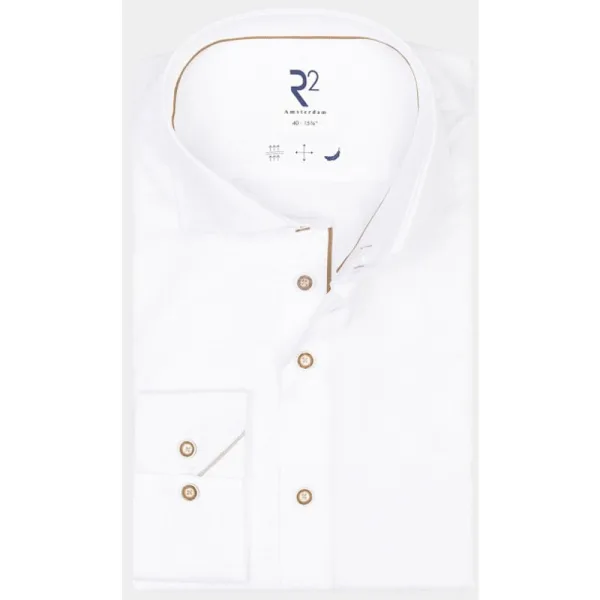 R2 Amsterdam Casual hemd lange mouw Wit Widespread NOS.TWILL.008/004 met artikelcodeNOS.TWILL.008/004 . van het materiaal 100% Biologisch Katoen. Extra specificaties: , , , , kleur Wit.