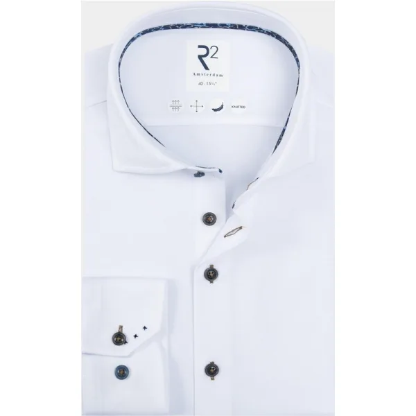 R2 Amsterdam Casual hemd lange mouw Wit Solid dobby knitted 130.WSP.001/004 Prijzen
