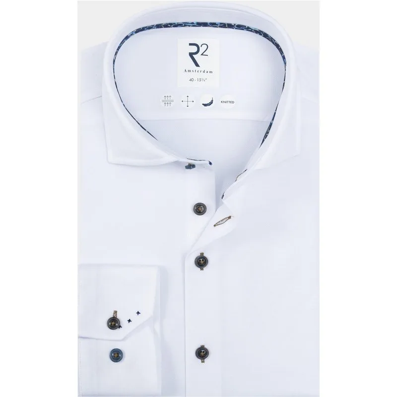 R2 Overhemd Wit R2 Dobby Technical Knitted Lange Mouw Overhemd...