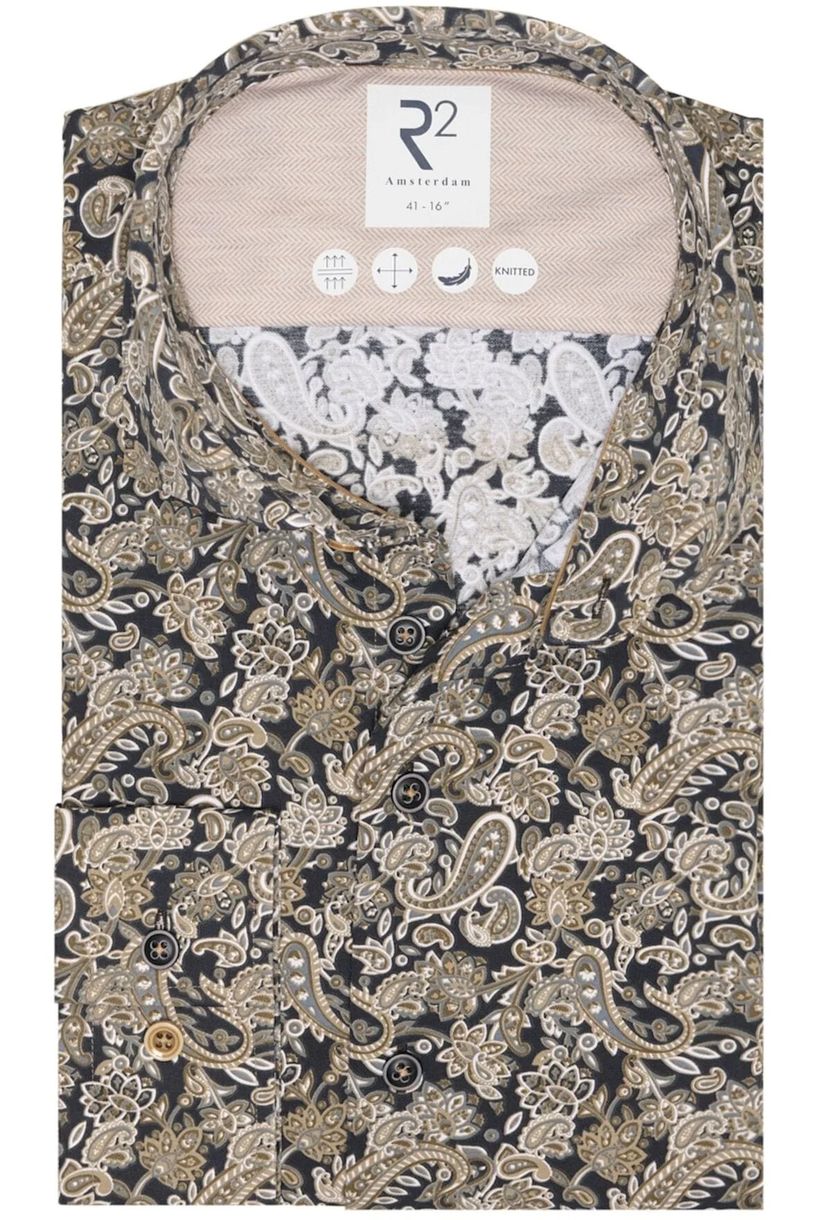- Bij Overhemden.com kun je R2 Amsterdam Jersey shirt donkergroen, Motief kopen voor slechts €99,95