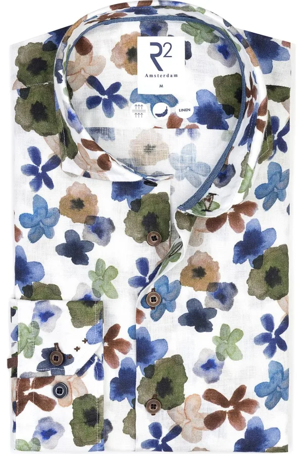 R2 Amsterdam Linnen Overhemd wit, Bloemen Prijzen