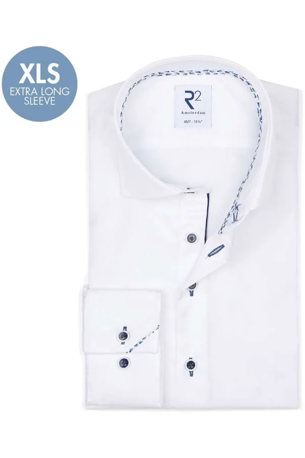R2 Amsterdam Overhemd extra lange mouw Wit NOS.TWILL.XLS.001/004