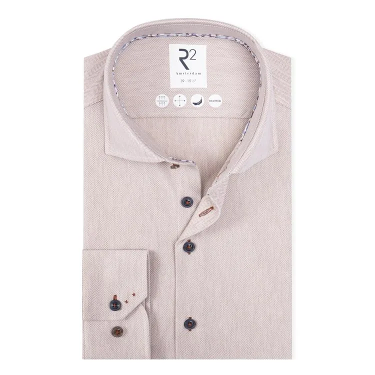 Op zoek naar hoge kwaliteit Heren Overhemden om je kledingkast mee op te vullen? Met deze Overhemd van R2 Amsterdam heb je altijd een goed Overhemd in huis. De R2 Knitted Travel Overhemd Herringbone Beige is heel geschikt!R2 Knitted Travel Overhemd Herringbone Beige in de kleur Beige met een pasvorm Modern-fit is gemaakt van Katoen en Polyester met Enkel manchet met een Effen dessin en Lange mouw