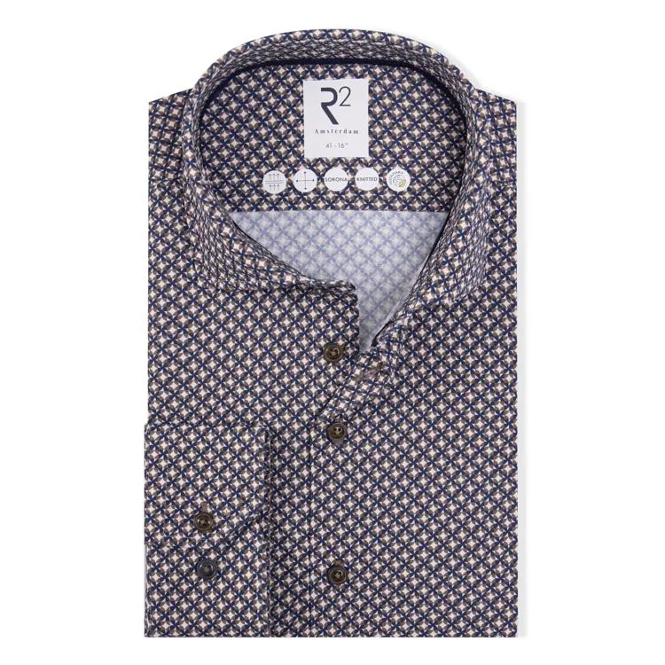 - Bij bol.com kun je R2 Overhemd Retro Print Bruin Blauw - Maat 45 - Heren - Overhemden Formeel kopen voor slechts €74,95