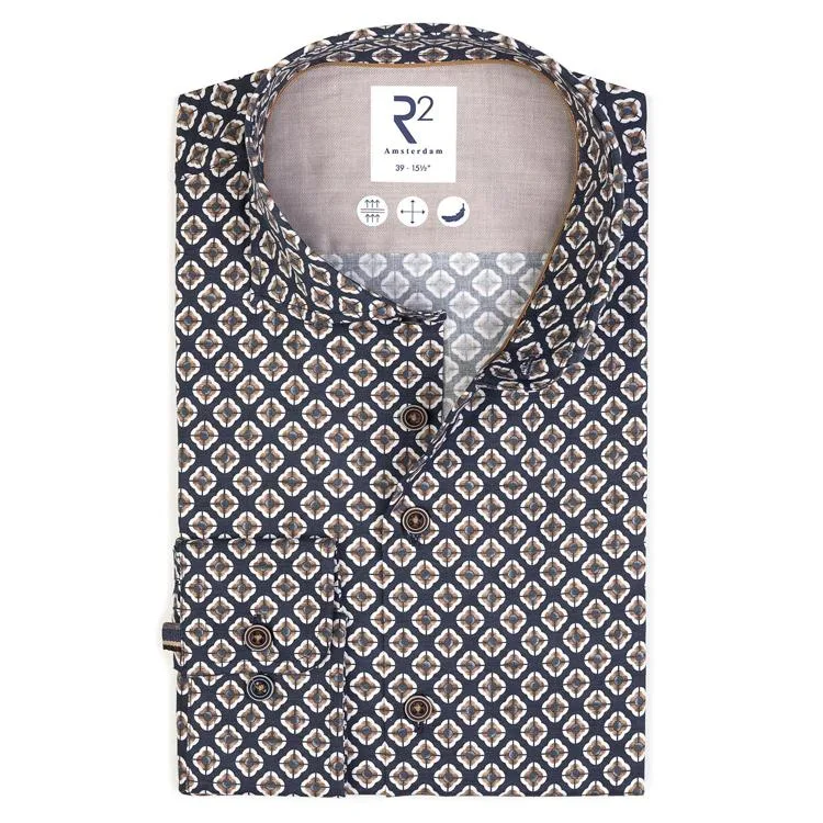 R2 Overhemd Camel Flower Print Donkerblauw (navy) - Maat 39...