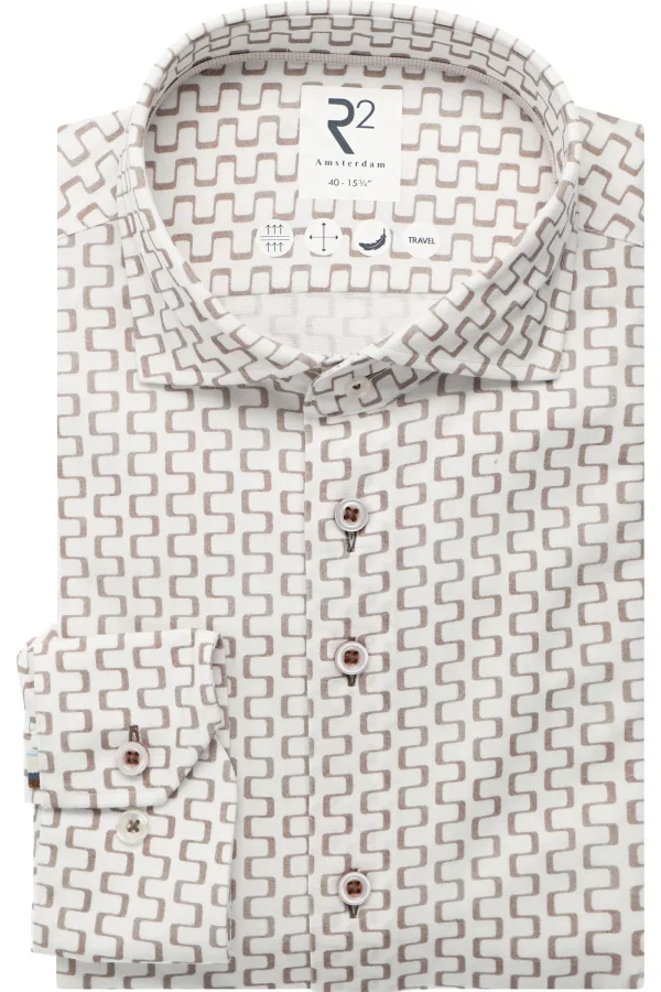 R2 Amsterdam Overhemd beige, Bedrukt Prijzen