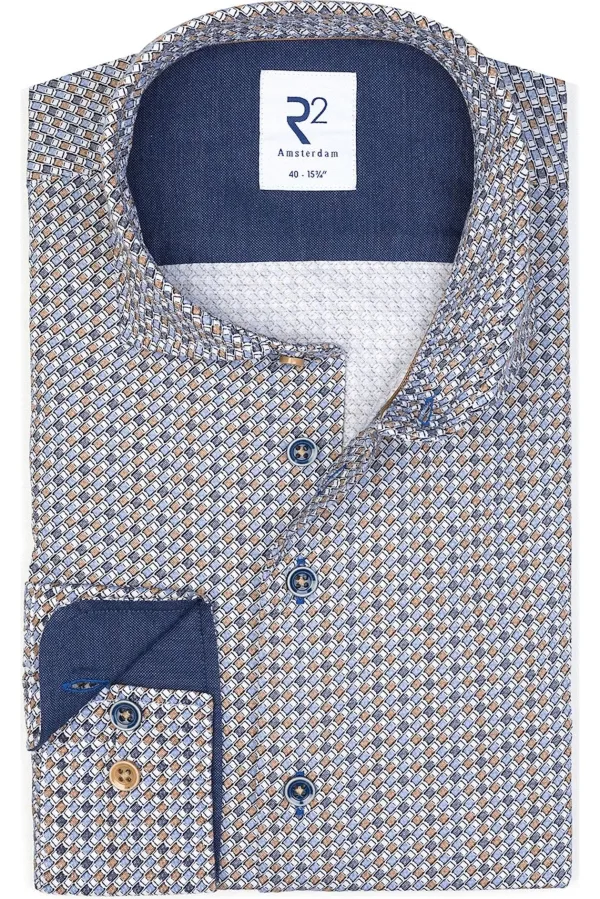 R2 Amsterdam Overhemd blauw, Bedrukt Prijzen