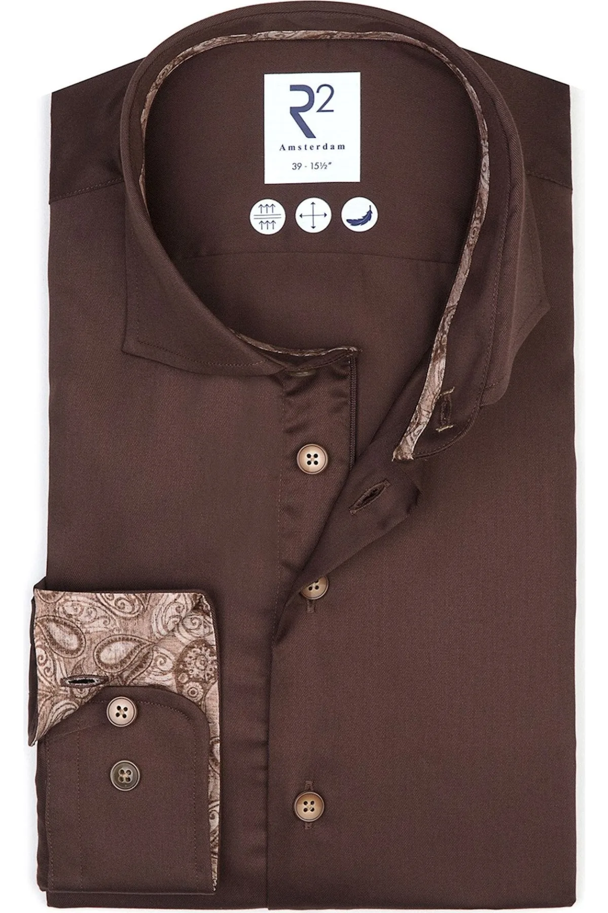 R2 Amsterdam Overhemd bruin, Effen Prijzen