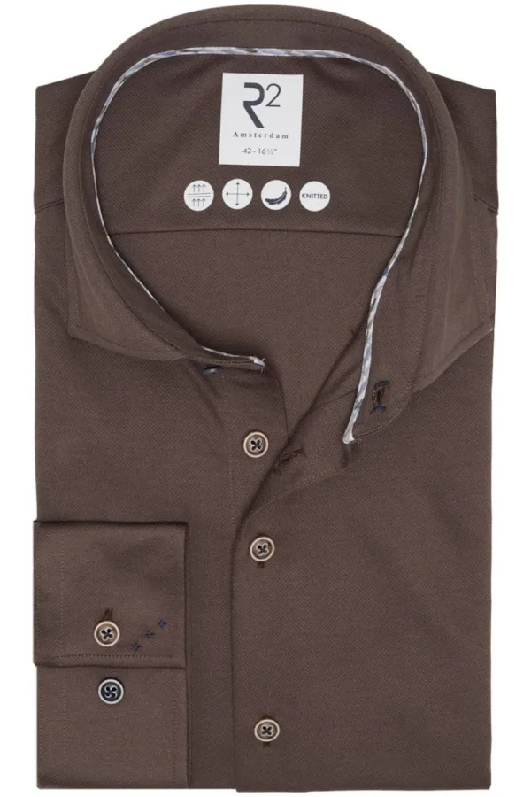 R2 Amsterdam Overhemd bruin, Effen