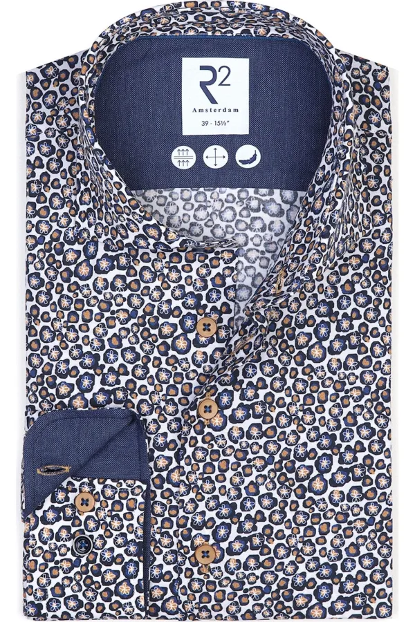 R2 Amsterdam Overhemd donkerblauw, Bloemen Prijzen