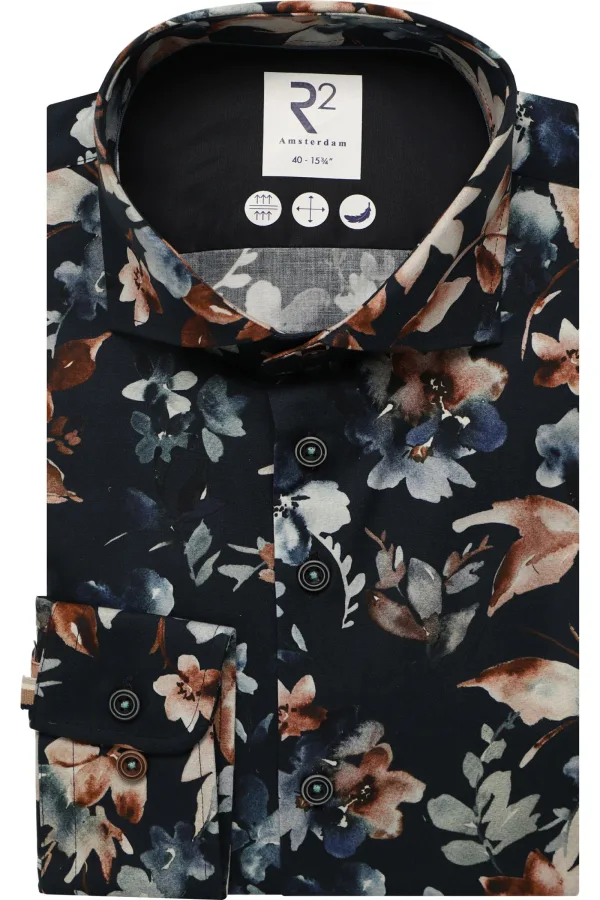 R2 Amsterdam Overhemd donkerblauw, Bloemen Prijzen