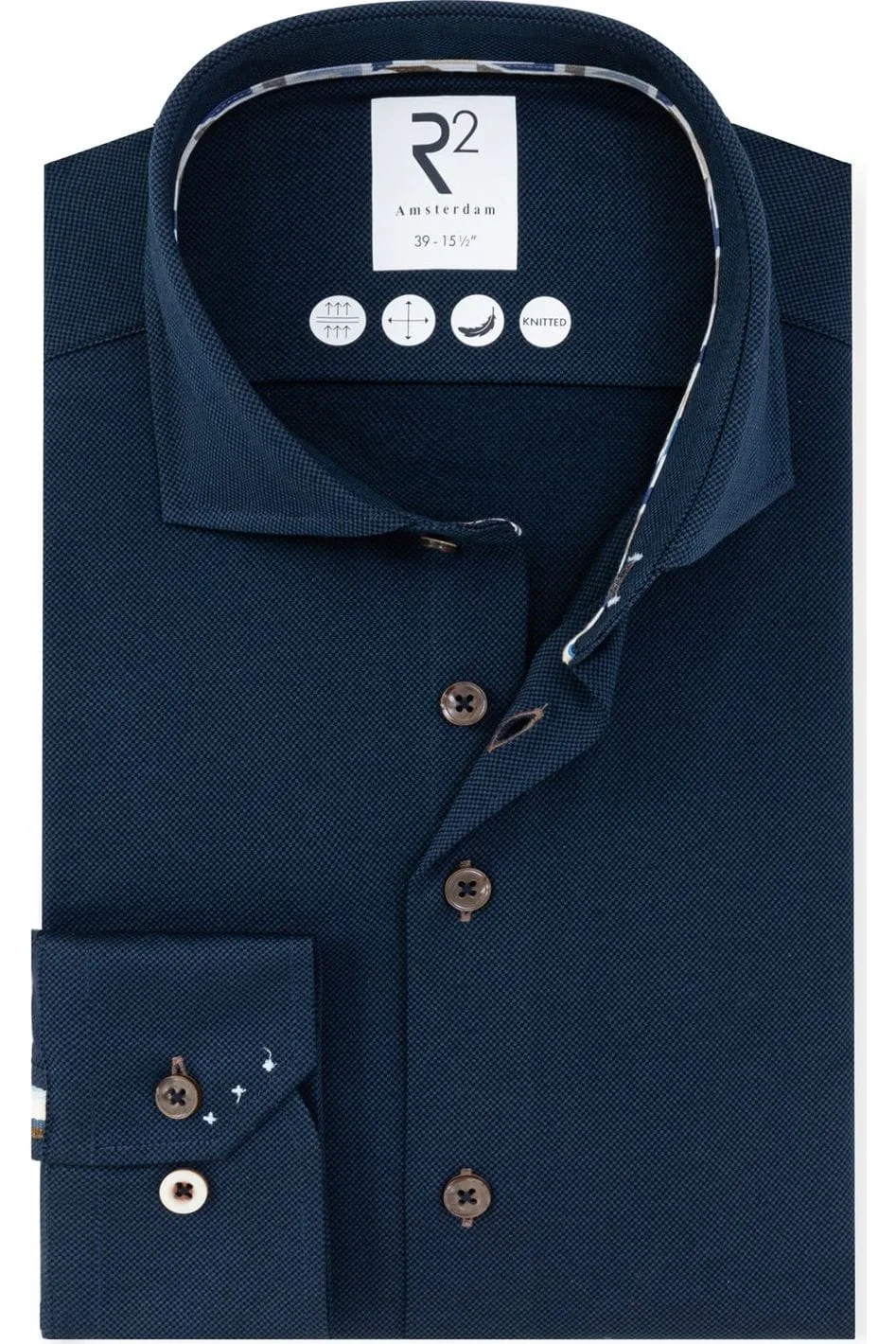 R2 Amsterdam Overhemd donkerblauw, Effen