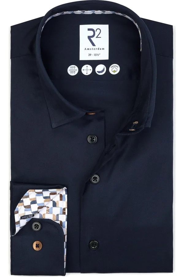R2 Amsterdam Overhemd donkerblauw, Effen Prijzen