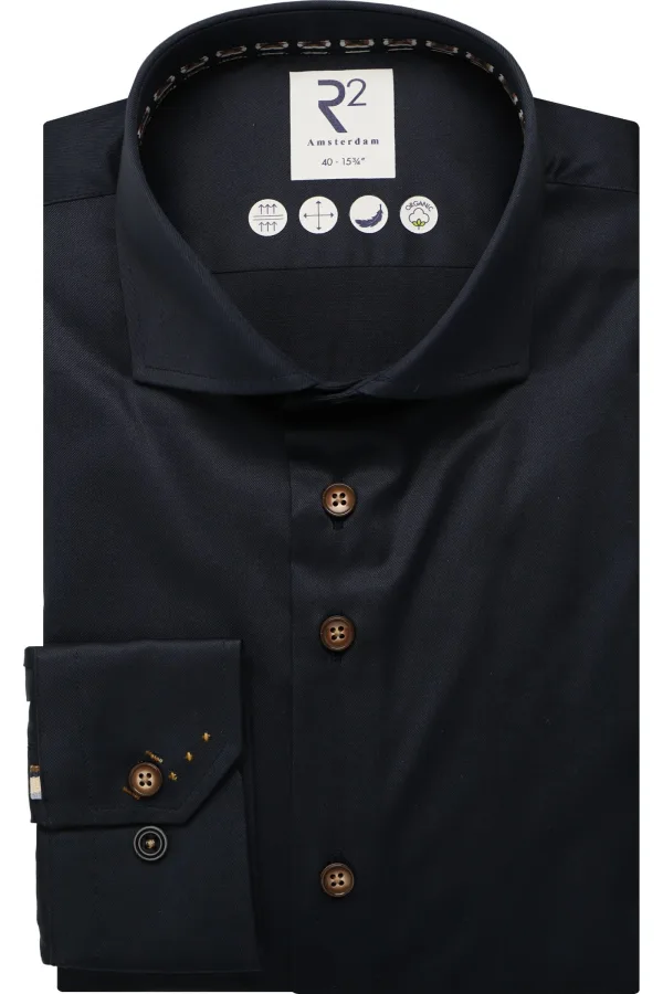 R2 Amsterdam Overhemd donkerblauw, Effen