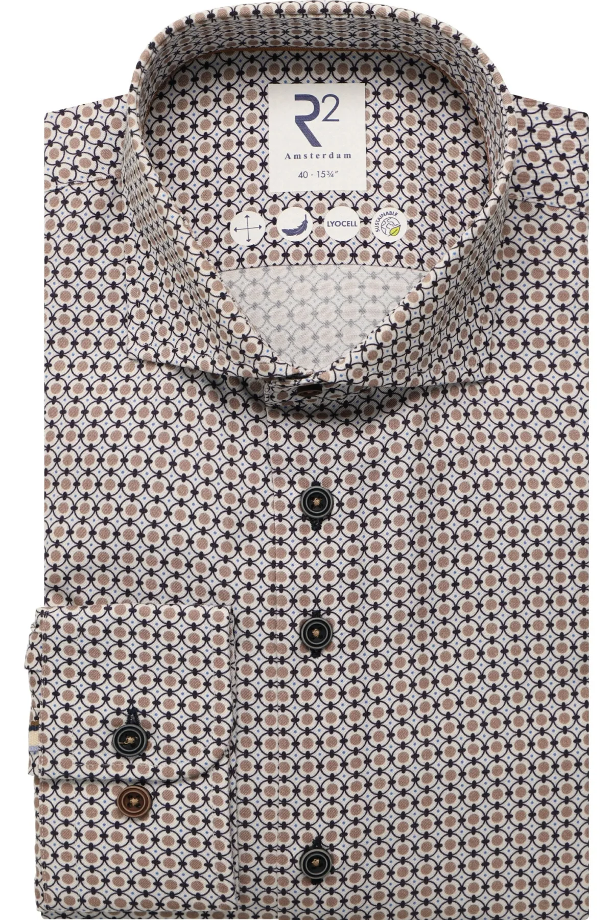 R2 Amsterdam Overhemd lichtbruin, Bedrukt Prijzen