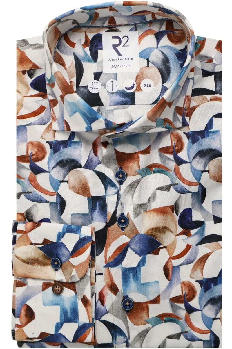 R2 Amsterdam Overhemd ML7 (72CM+) blauw/bruin Prijzen