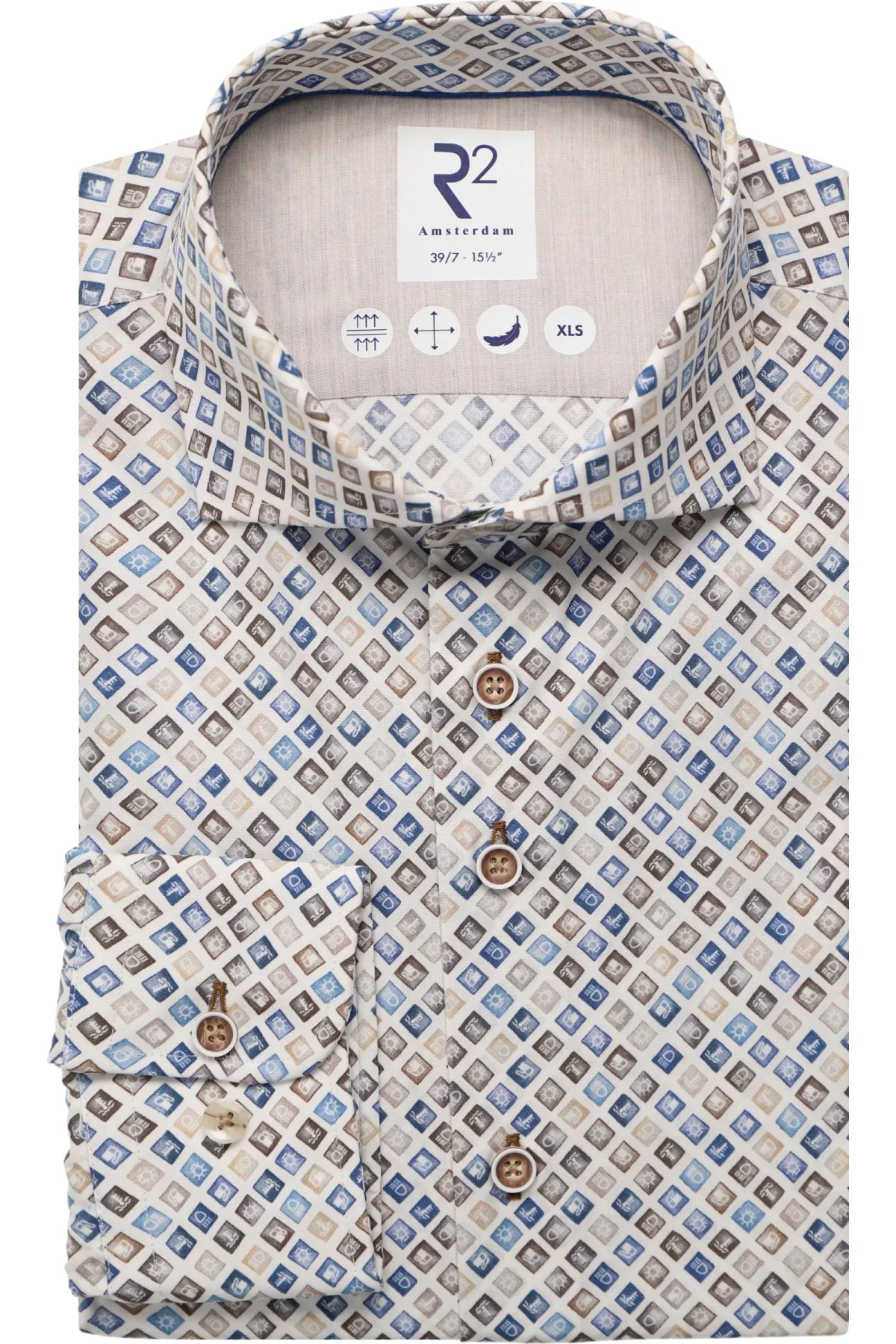 R2 Amsterdam Overhemd ML7 (72CM+) blauw/bruin Prijzen
