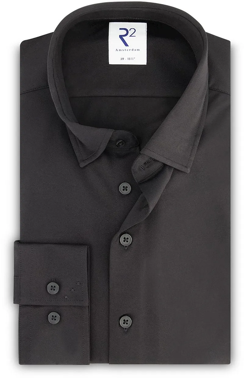 R2 Overhemd Knitted Piqué Zwart