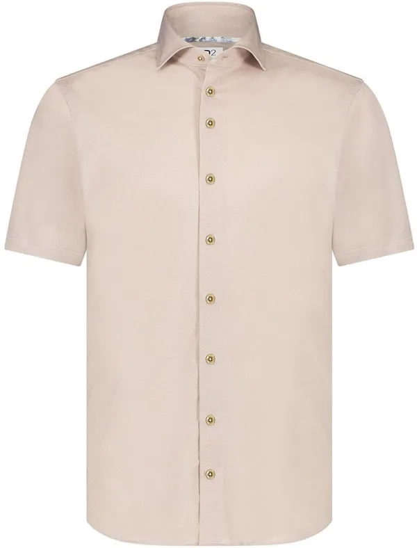 R2 Overhemd Korte Mouwen Knitted Piqué Beige