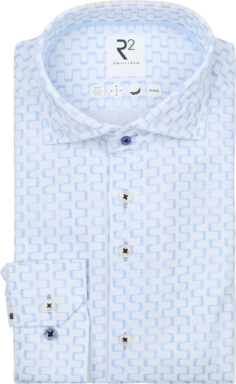 R2 Overhemd Sorona Print Lichtblauw Prijzen