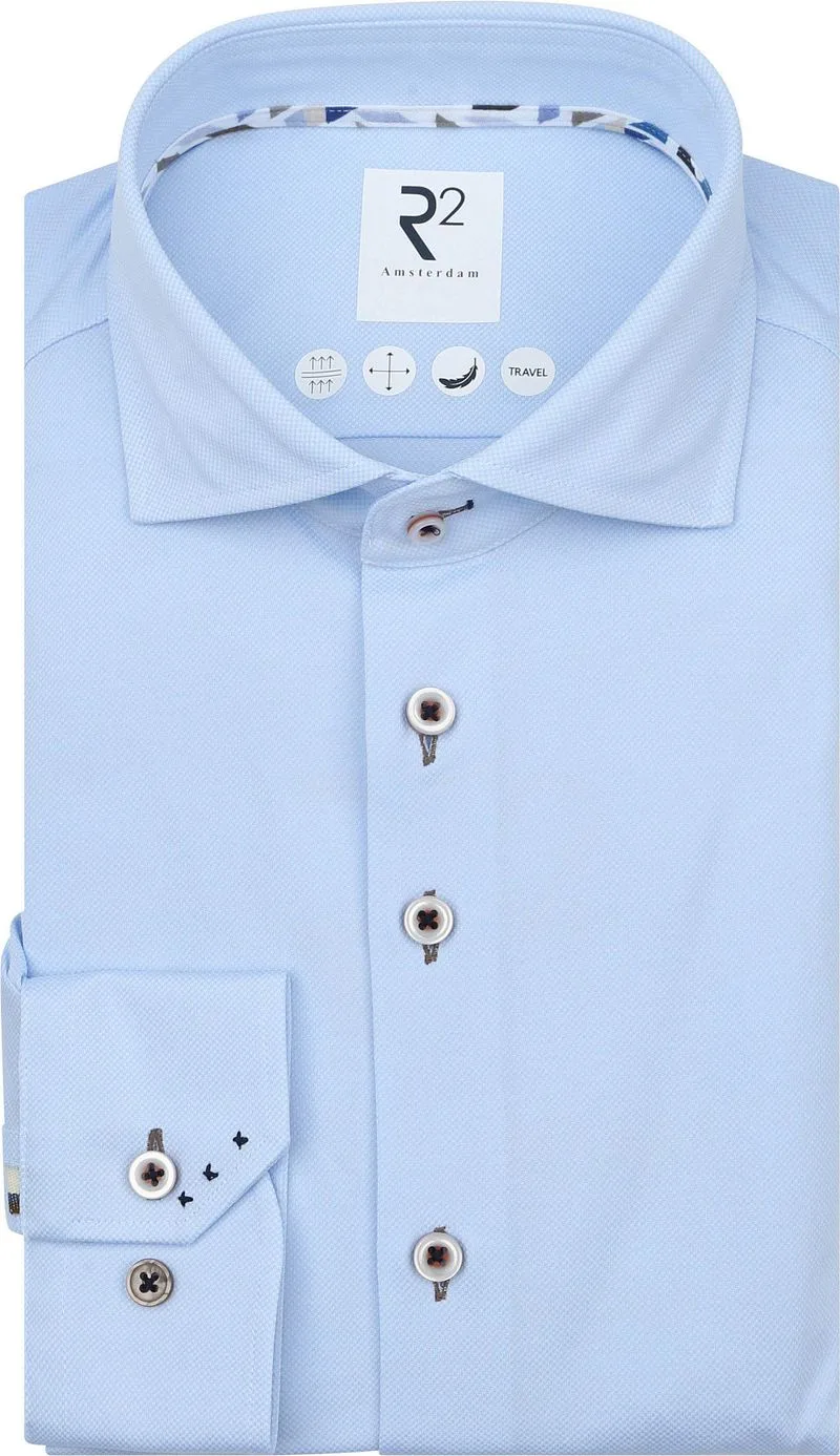 R2 Overhemd Technical Knitted Dobby Lichtblauw