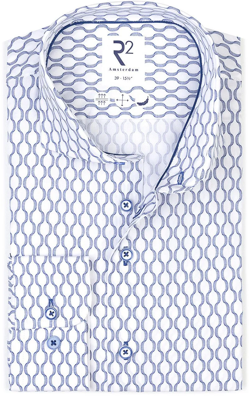 Op zoek naar hoge kwaliteit Heren Overhemden om je kledingkast mee aan te vullen? Met deze Overhemd van R2 Amsterdam heb je altijd een goed Overhemd in huis. De R2 Poplin Overhemd Print Blauw is heel geschikt!R2 Poplin Overhemd Print Blauw in de kleur Blauw met een pasvorm Modern-fit is gemaakt van Katoen met Enkel manchet met een Print dessin en Lange mouw