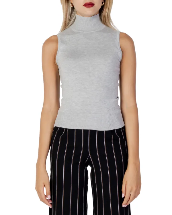 Effen gebreide top met opstaande kraag, geribde boorden en decoratieve stenen applicatie in een aansluitend model.