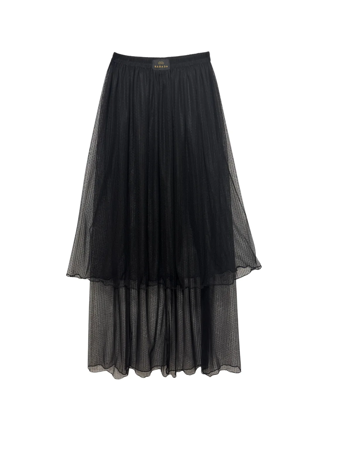 Materiaal: Tule; Motief: Gestippeld; Lengte: 7/8 lengte; Pasvorm: Normale pasvorm