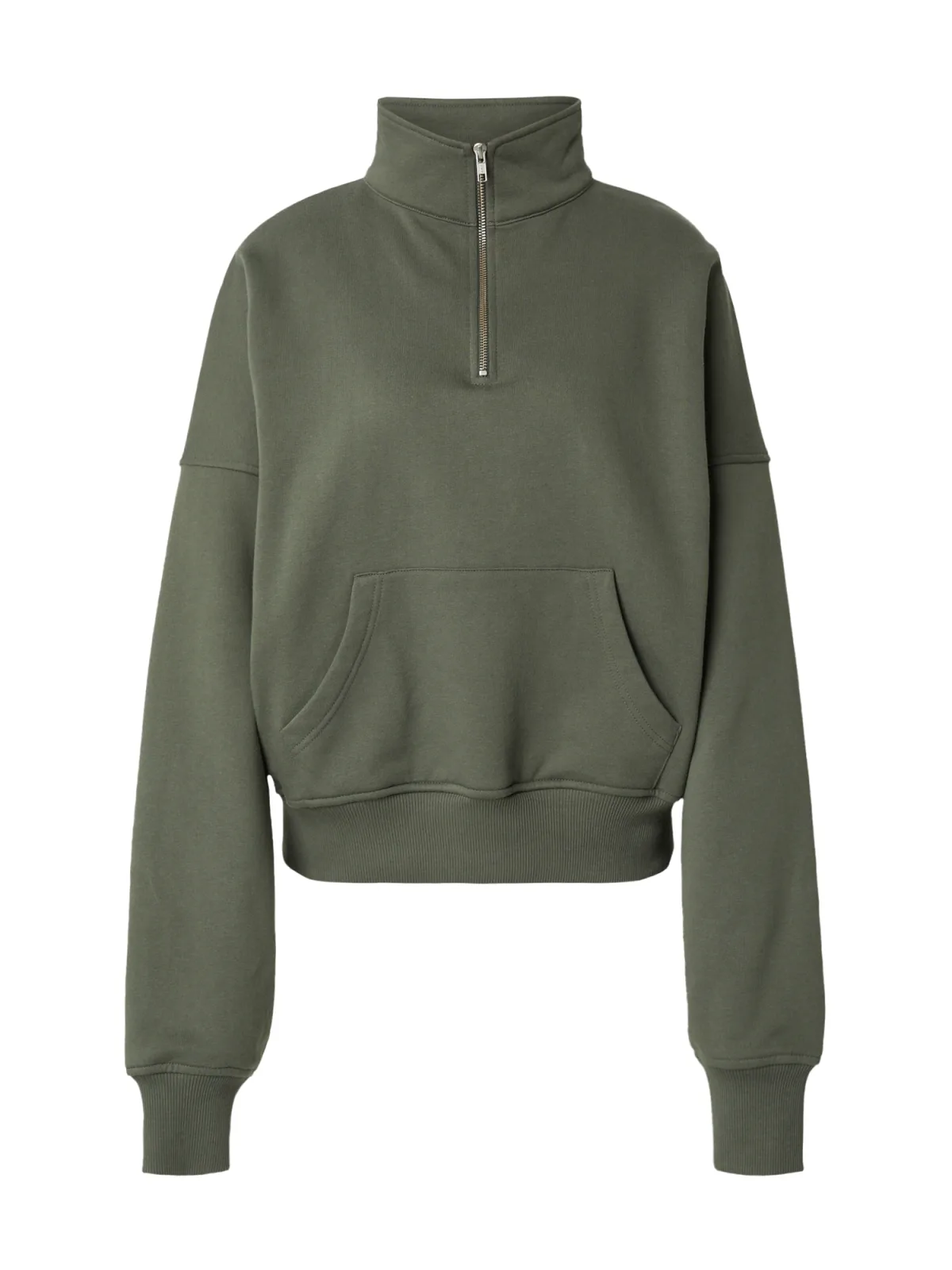 Design: Geribd ceintuurtje, Overcut schouder, Kangaroo zak; Type sluiting: Ritssluiting; Materiaal: Sweatstof; Halstype: Schipperskraag; Motief: Effen; Extra's: Voelt zacht aan, Huidvriendelijk materiaal; Pasvorm: Normale pasvorm; Armlengte: Lange mouw; Lengte: Normale lengte