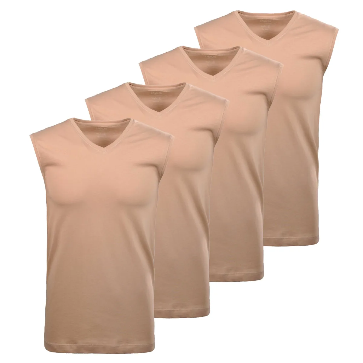 Onderhemden voor heren van het merk RAGMAN. In een handige verpakking van 4 stuks. Nauwsluitend mouwloos shirt met V-hals. Comfortabel om te dragen dankzij puur katoen.