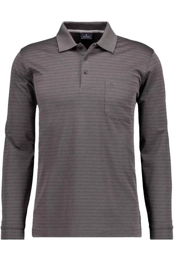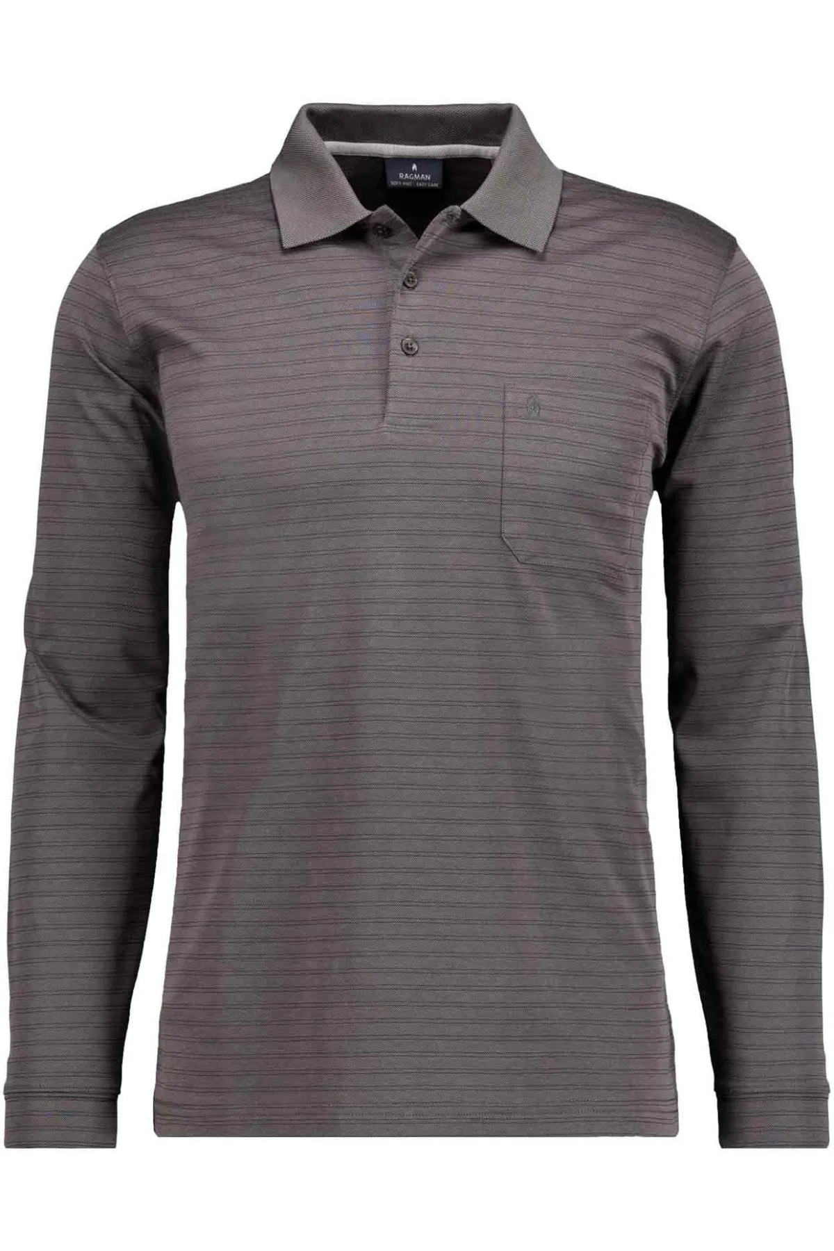 RAGMAN Poloshirt lange mouw antraciet, Gestreept