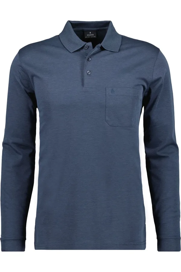 RAGMAN Poloshirt lange mouw donkerblauw, Effen Prijzen