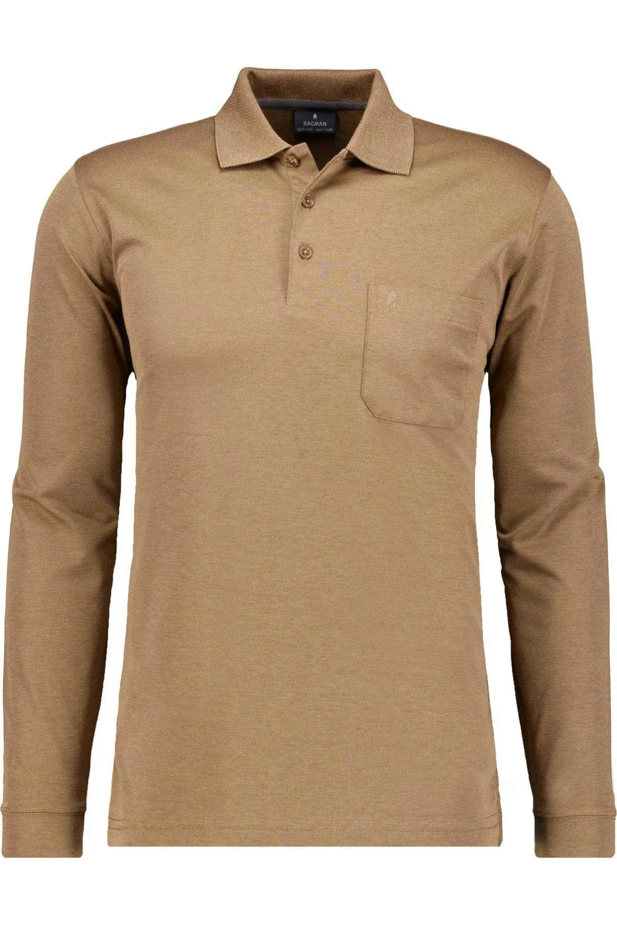 Specificaties: RAGMAN Poloshirt lange mouw Kaneel, Effen