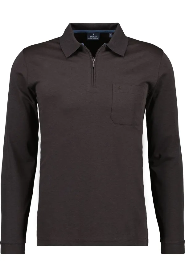 Specificaties: RAGMAN Poloshirt lange mouw mokka, Effen