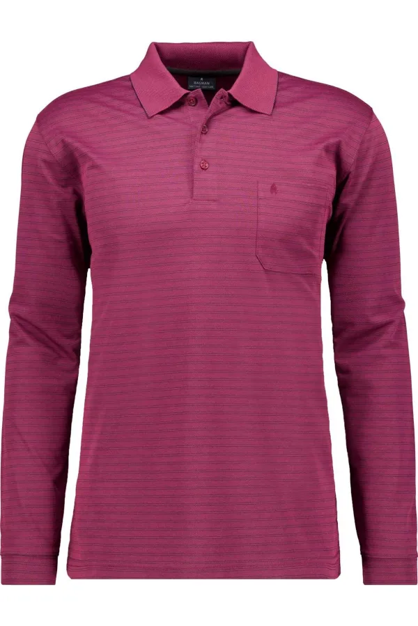 RAGMAN Poloshirt lange mouw paars, Gestreept