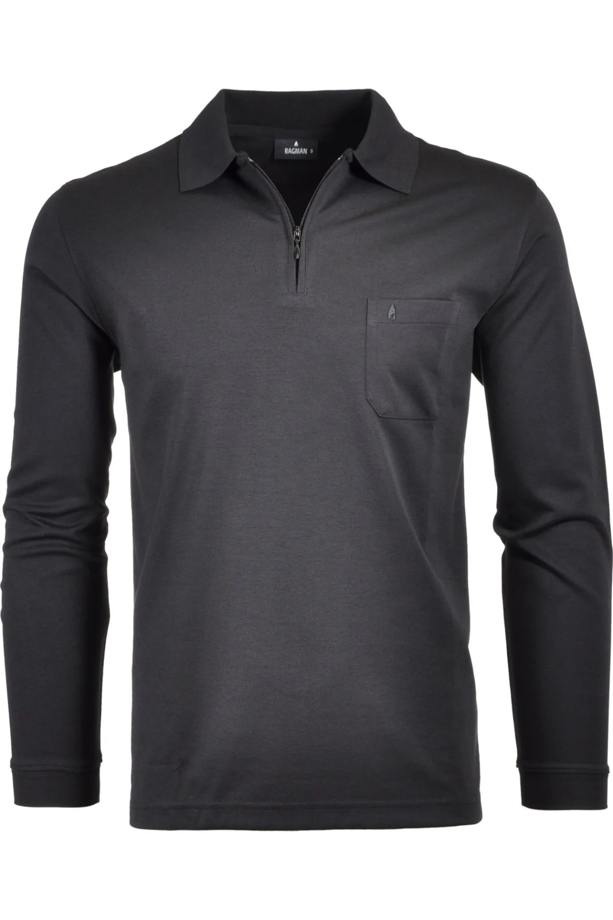RAGMAN Poloshirt lange mouw zwart, Effen
