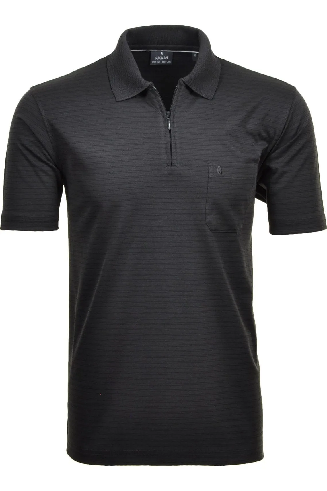 RAGMAN Soft Knit Polo shirt Korte mouw antraciet