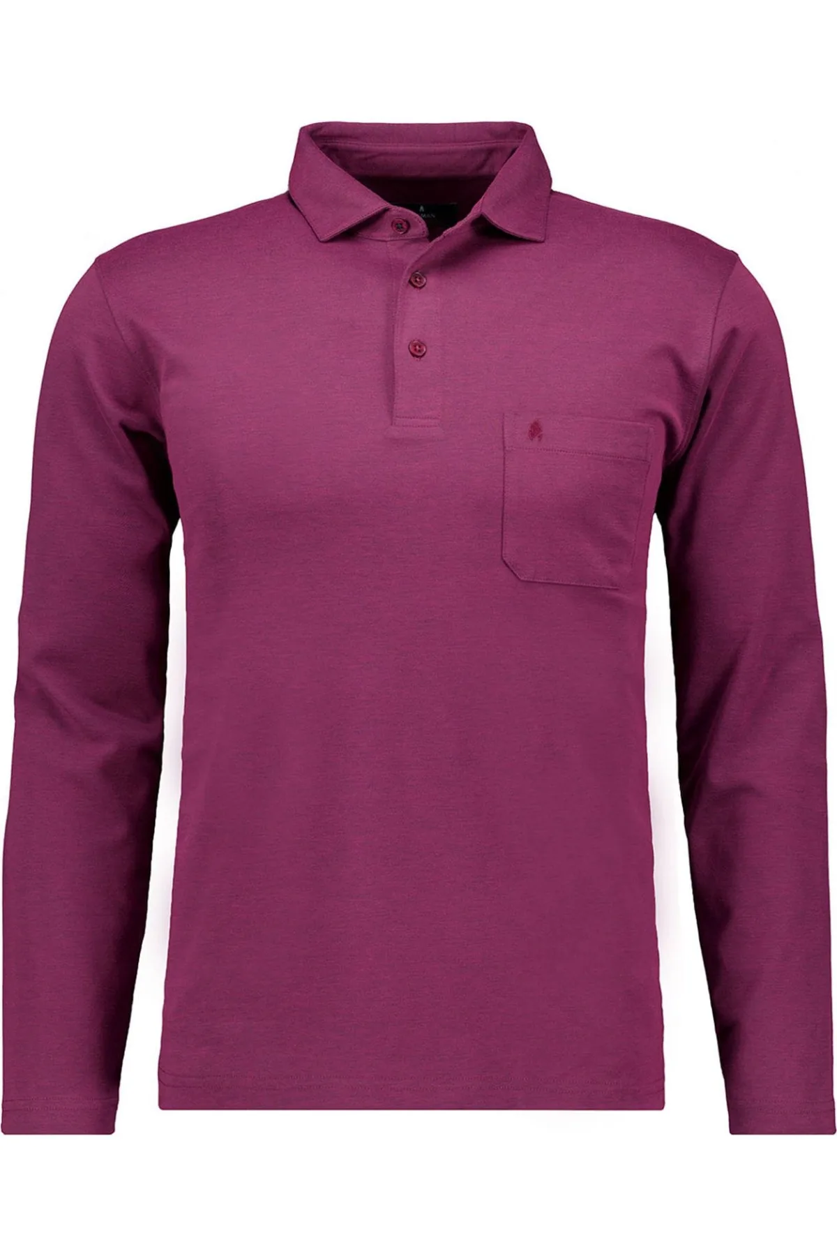 RAGMAN Soft Knit Poloshirt lange mouw rood, Effen