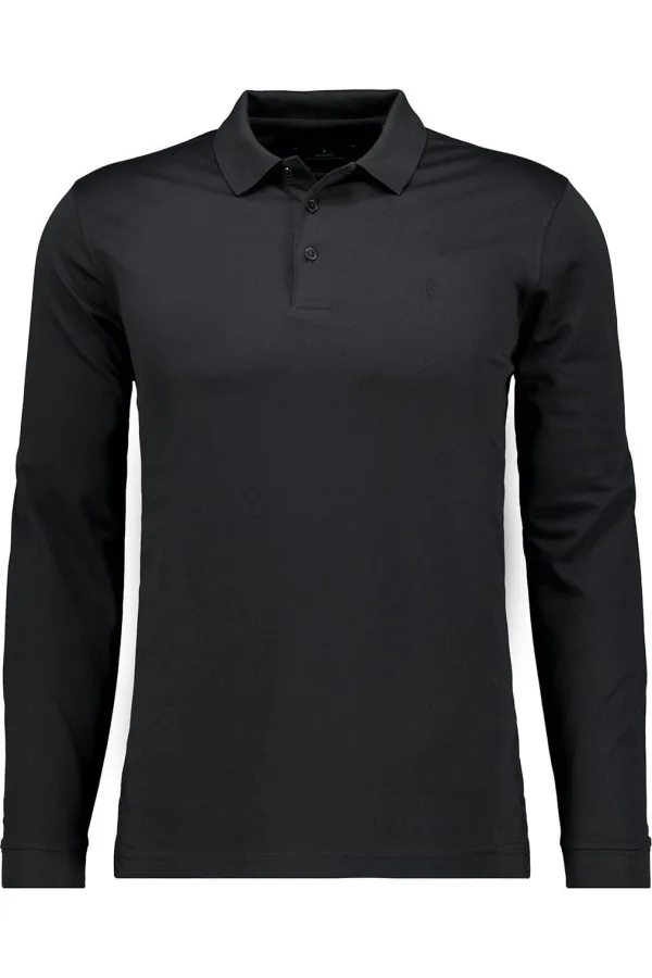 RAGMAN Soft Knit Poloshirt lange mouw zwart, Effen
