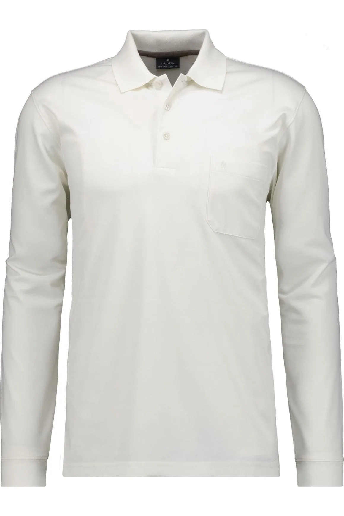 RAGMAN Softknit Poloshirt lange mouw ecru, Effen