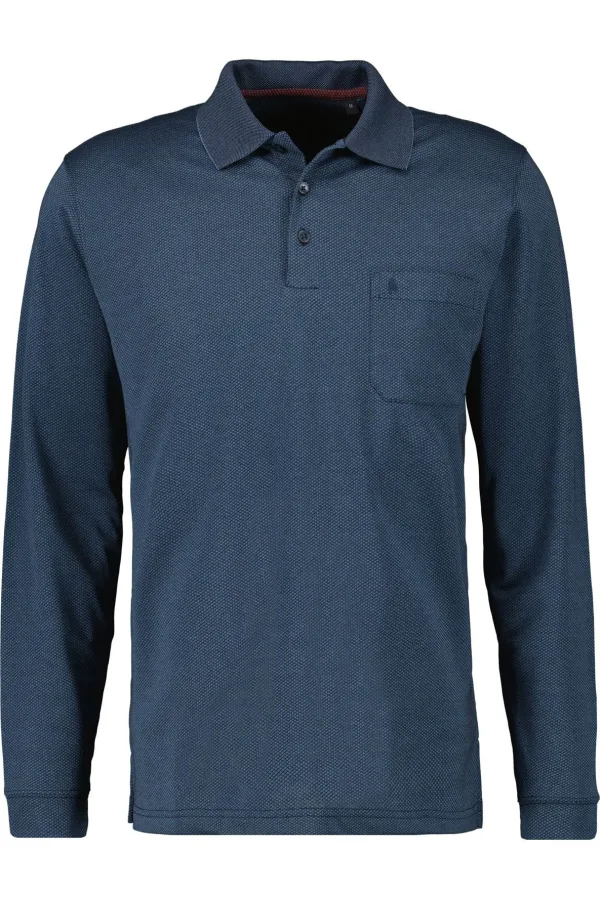 RAGMAN Softknit Poloshirt lange mouw marine, Motief