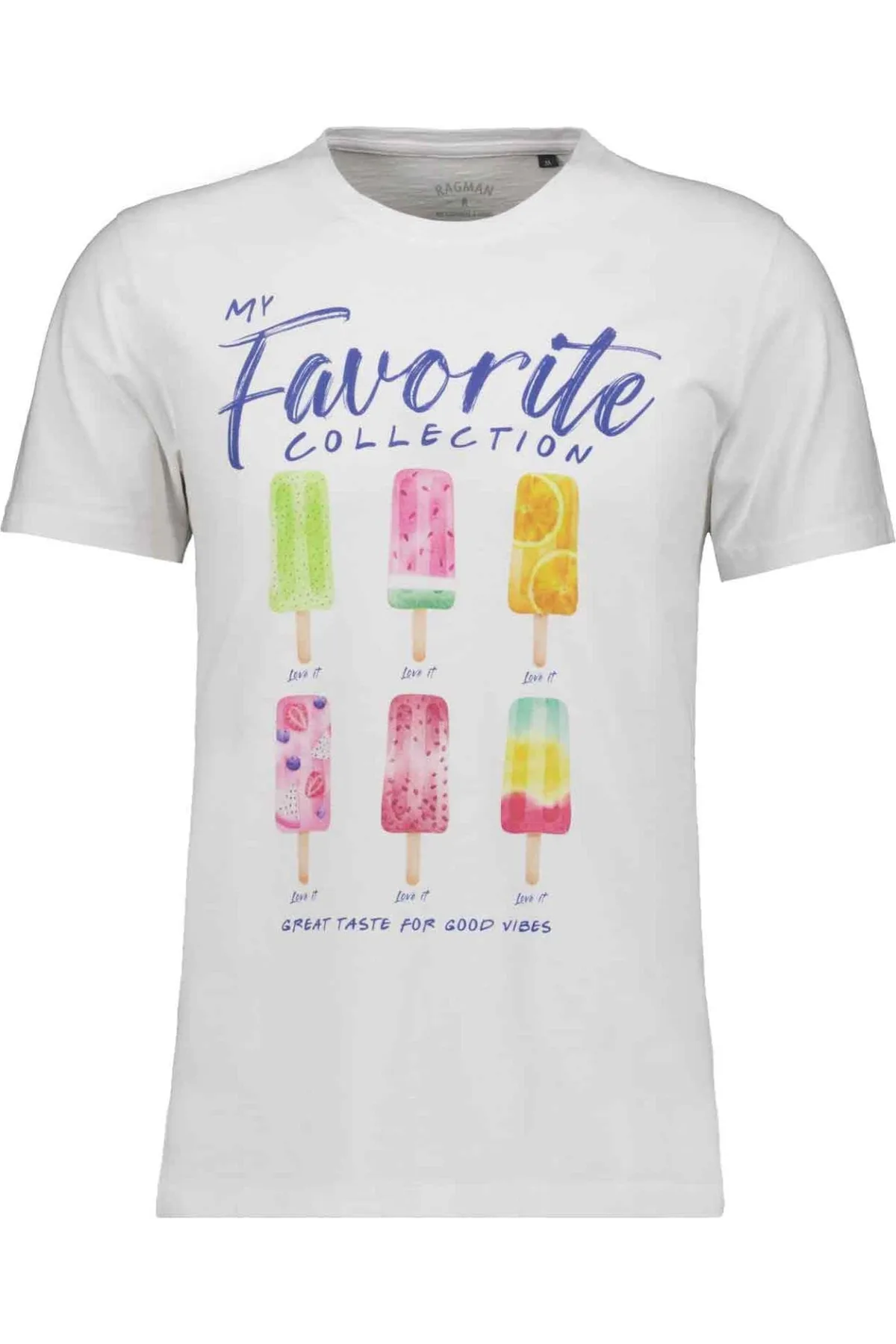 RAGMAN T-Shirt ronde hals wit, Bedrukt