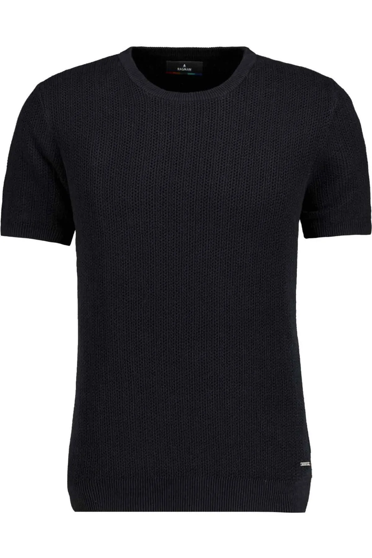 RAGMAN T-Shirt ronde hals zwart, Gestructureerd