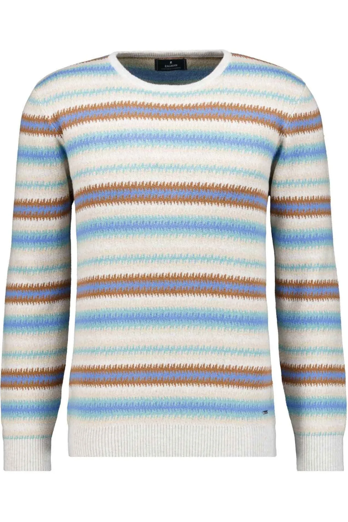 RAGMAN Trui ronde halslichtgrijs, Gestreept